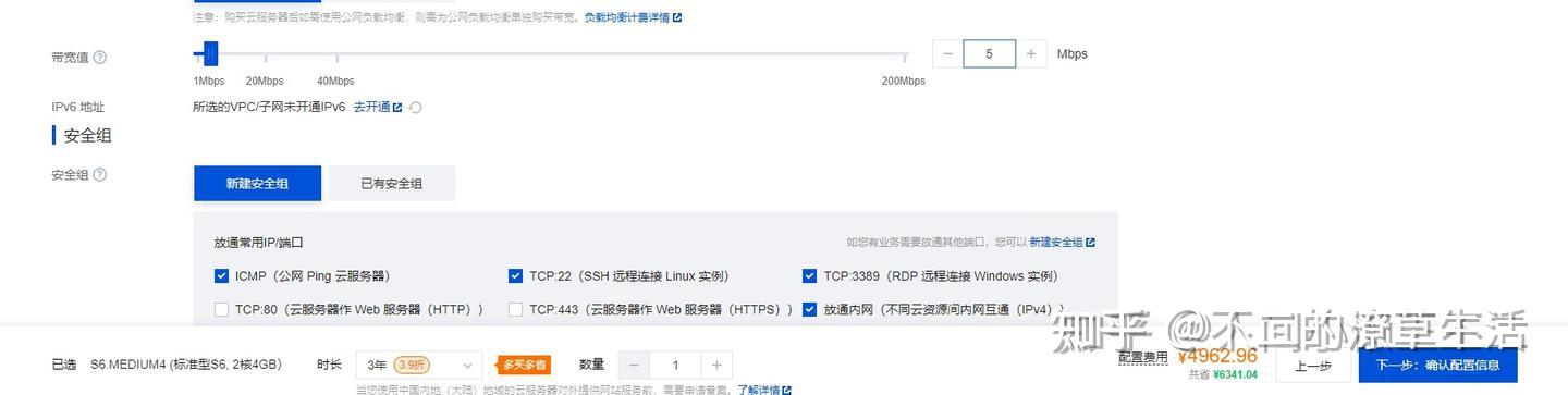 我们以中小企业使用较多的2核4g,5M带宽、时间三年的服务器为例:
