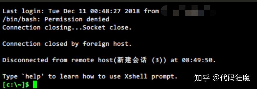 /bin/bash: Permission denied Conenction closing...Socket close.