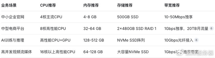 以下为2025年国外服务器不同业务场景的配置参考: