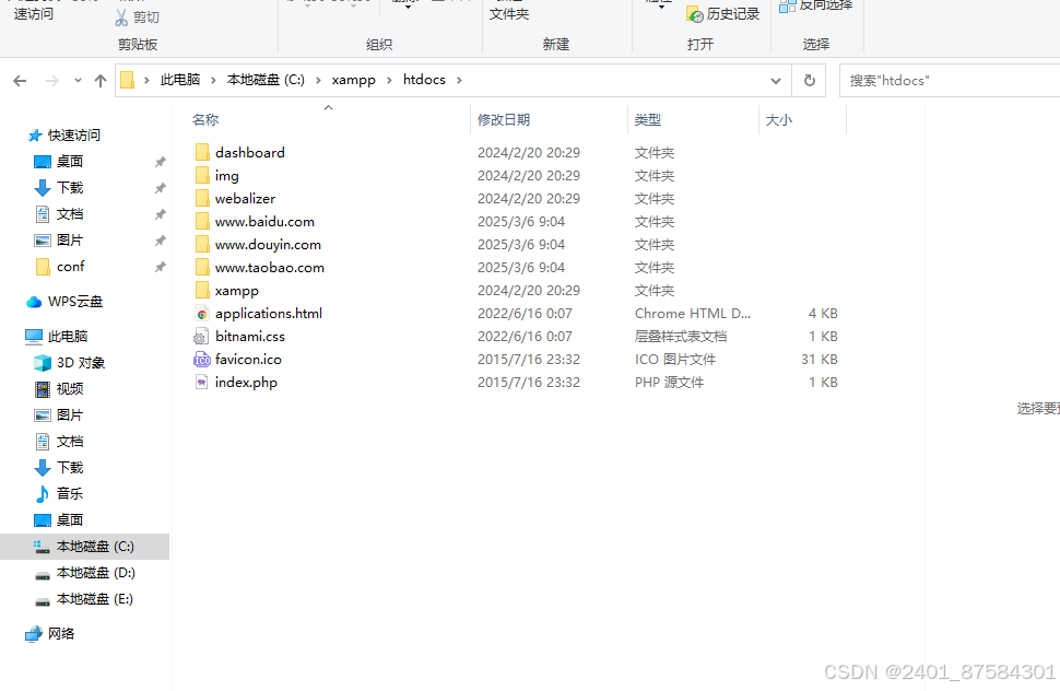 在C:\\xampp\\htdocs目录下,分别创建www.baidu.com,www.taobao.com和www.douyin.com三个文件夹。