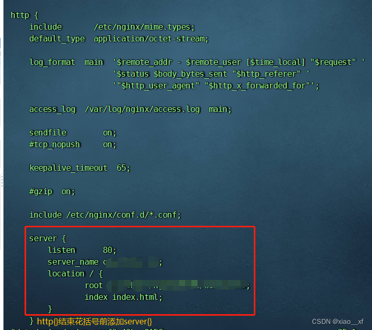 2、增加完整的server{}标签(在http{}标签的结束大括号前增加)
