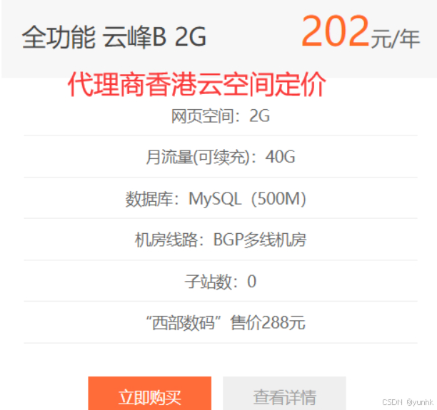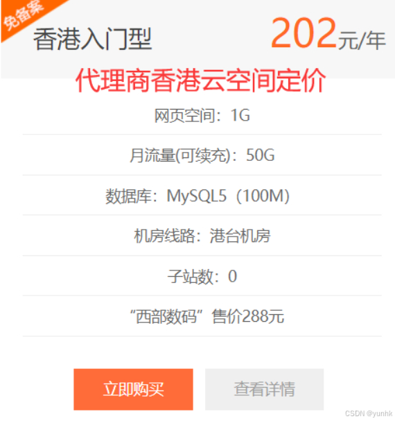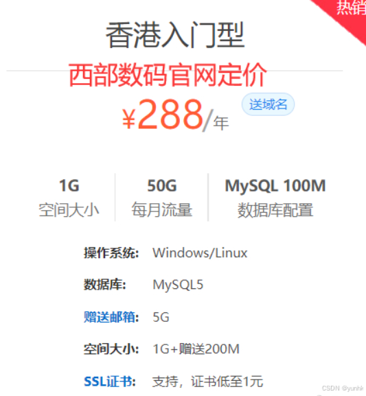 西部数码虚拟主机香港入门:在西部数码官网定价288/年,代理商香港云空间定价202/年,而且同样都享受买两年送一年、买三年送二年活动。