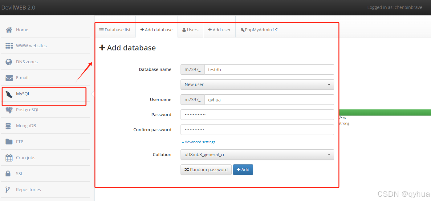 使用自带的phpMyAdmin管理