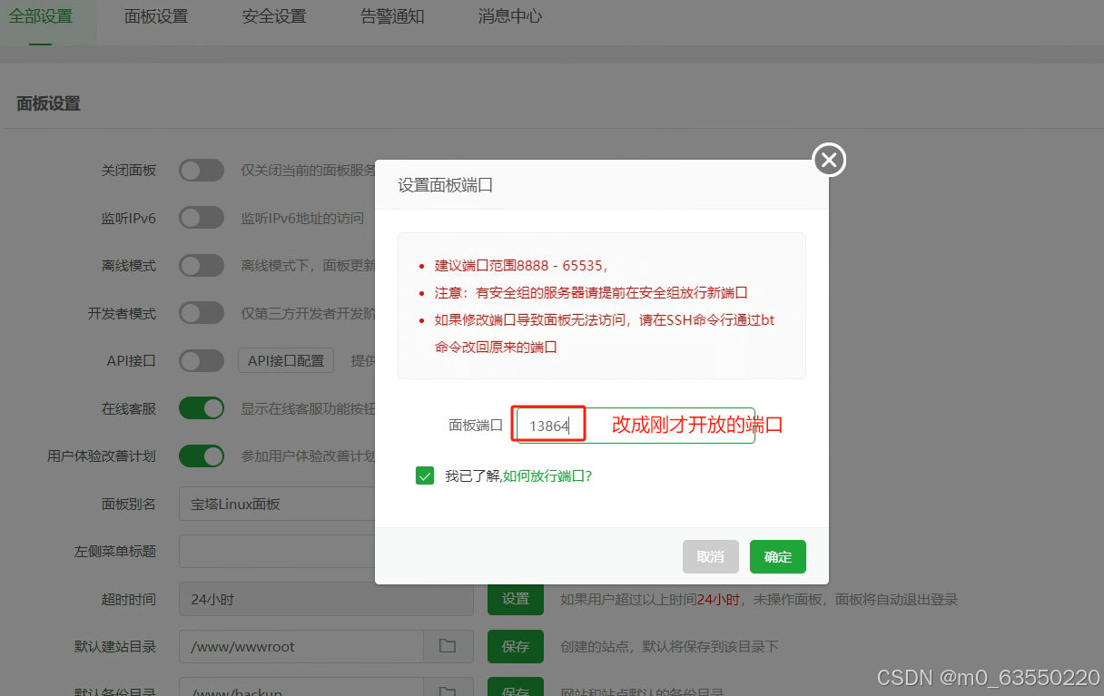 在登录宝塔面板之前,在平台上随便开启一个端口,作为宝塔日后访问的端口,因为宝塔默认端口是8888,不安全,所以改一个自己的端口