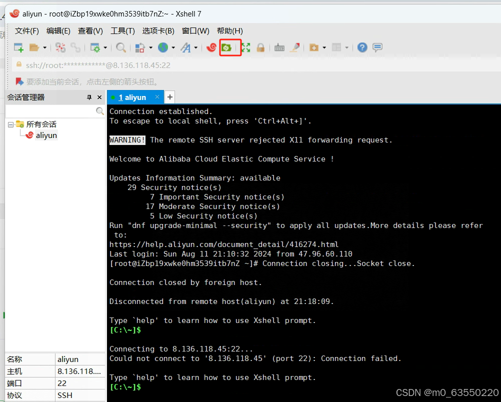 在xhell进入到你jar包的目录,使用命令nohup java -jar [jar包名字] >log.out&去启动jar包