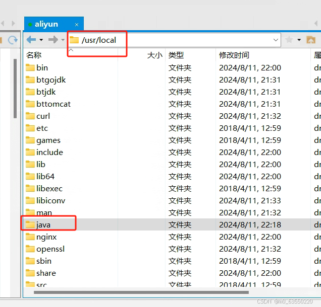 在/usr/local目录下新建一个文件夹java,将jdk的包上传到java目录下