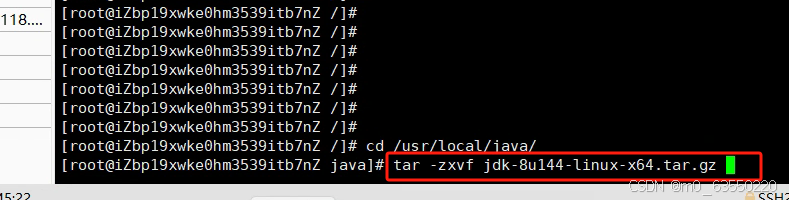 使用命令tar -zxvf jdk-8u144-linux-x64.tar.gz将压缩包解压