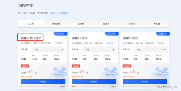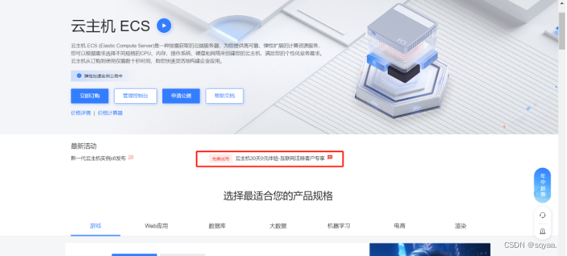新用户注册可以免费领一个月云主机试用,赶快行动起来吧。