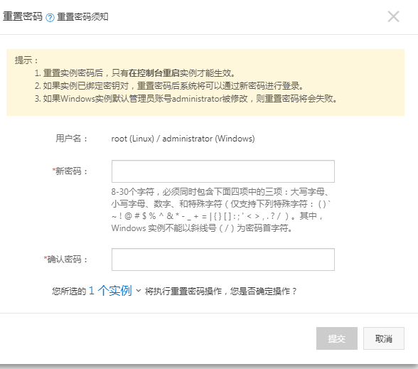 2,设置root密码 如果你购买时没有设置root密码 这里需要重置下